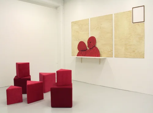 Bang Larsen came to Sandefjord Kunstforening with a completely new project. Elaborate handiwork is combined with impatient scenery and quirky technique, in a search for something that dissolves the strong feeling that there is something unsaid that needs to be said. In the exhibition space, she mixes everyday life with twisted fantasies, and gives space to the things that can emerge in an open mind. For mounting the exhibition, she takes with her what has taken shape in her studio and works it into the exhibition space. At first glance, her exhibitions may look innocent and childlike, but it doesn't take long before one discovers the disturbing and absurd that is always present. Sometimes it's very clear, other times it's simmering without you quite being able to put your finger on what it is. Often they balance between conflicting qualities that make them difficult to place, difficult to capture, and in that way they are opened up to the visitors personal interpretation.